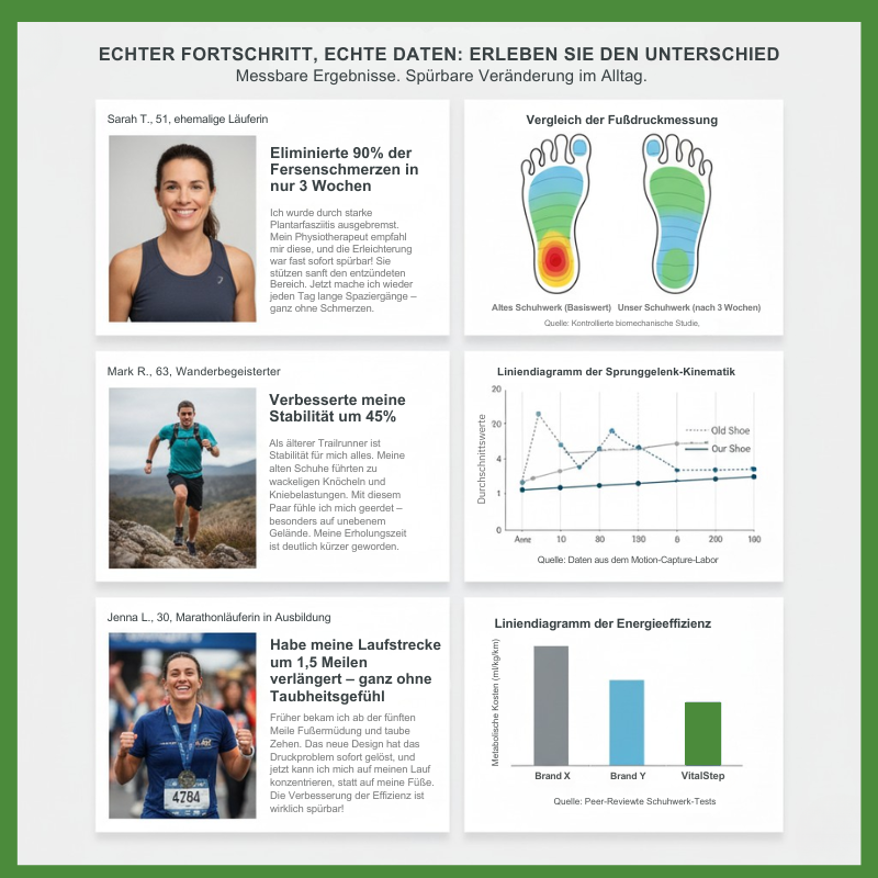 Jedes VitalStep-Design wird einer biomechanischen Analyse unterzogen. Wir arbeiten mit Fußgesundheitsexperten zusammen. Wir messen. Wir iterieren. Wir validieren.